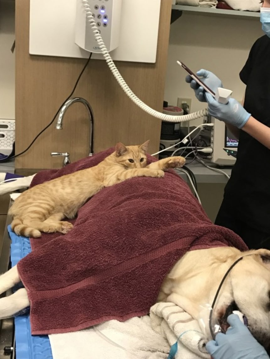 また心優しいロンさんは、歯の手術で麻酔されている動物にも身を寄せてはその体をそっと温め、毛づくろいをするときもある。ロンさんのそんな行動は獣医の目からみても、相手を心地良くさせようとする意図が感じられたという。