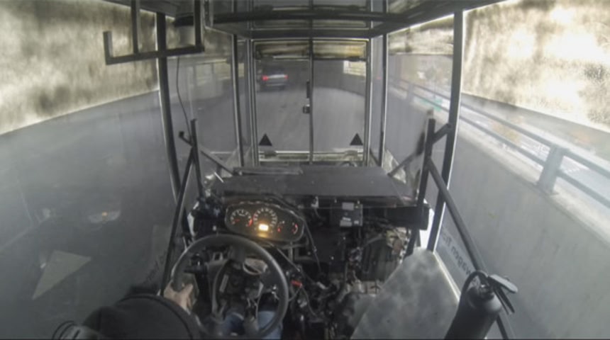 この画像を大きなサイズで見るマジックミラー状態のトレーラー内から外は丸見え。ドライバーはポカーンとしてる通行人を後にスイスイ走ることができたのだ。
