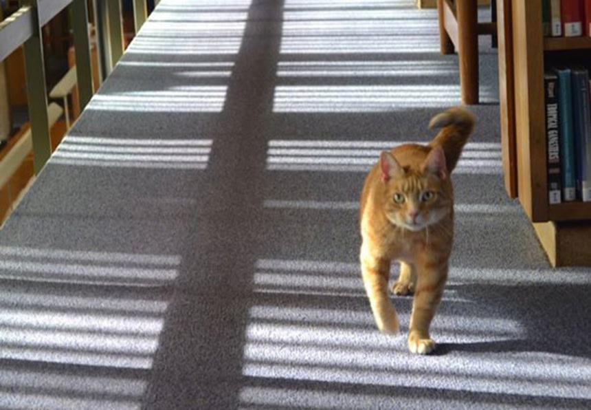 この画像を大きなサイズで見る近年、看護や店番、受付係などを人々の心を癒してくれる猫のエピソードが注目を集める中、イギリス、ケンブリッジ大学図書館の司書を手伝い、大勢の学生を癒す3本足のマスコット猫が話題となっている。