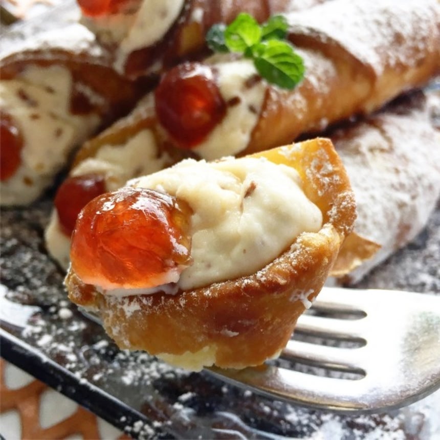 この画像を大きなサイズで見る映画『ゴッドファーザー』に登場したことで知られている、「カンノーリ(単数形はカンノーロ)」は、イタリア、シチリア島発祥の、筒状に揚げた生地の中にリコッタチーズを主体としたクリームがたっぷりつまったお菓子である。