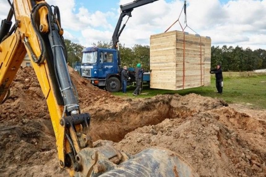 この画像を大きなサイズで見る穴を掘ってカメラを置き、大きさ約1.75×3m、重さ約400kgの大きな一枚の超強化ガラスで穴を覆った。