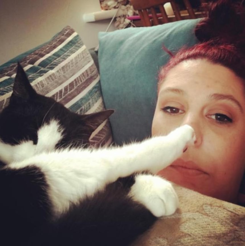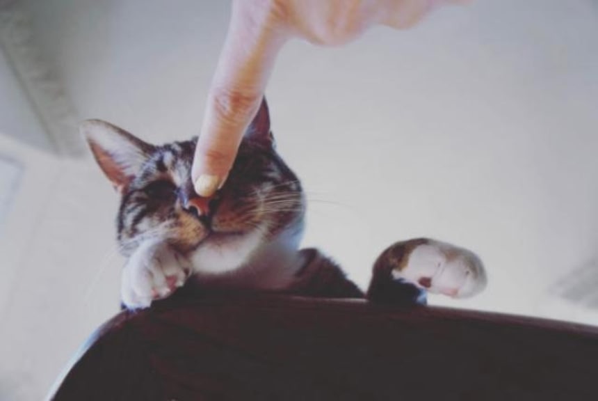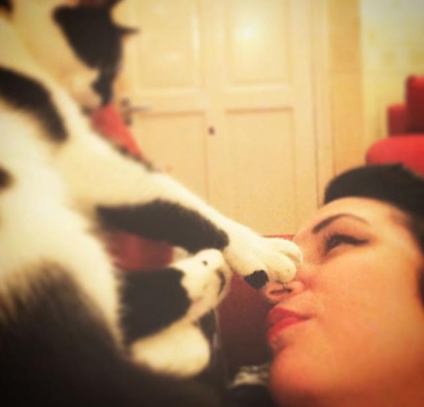 うちの猫、キスしよーとしたら鼻を押さえつけきて嫌がるくせに