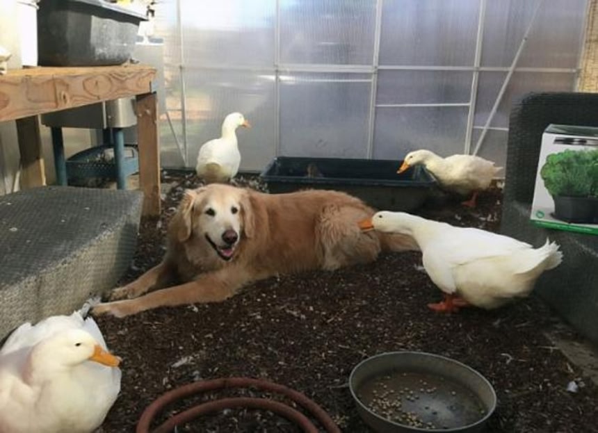 ゴールデン・レトリバーと北京ダックの出会いは最悪だった。だってゴールデンとか、鳥小屋に侵入し、ダックのごはんを盗み食いしてたんだから。