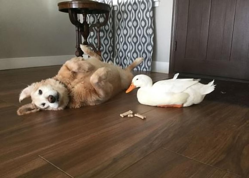 この画像を大きなサイズで見る「明らかにバークレーとルディの間には強い絆のようなものがあります。変わり者同士のコンビですが、相棒がいるって幸運なことだなと思ってます。」と、パムさんはダックと犬の間に生まれた友情について語ってくれた。