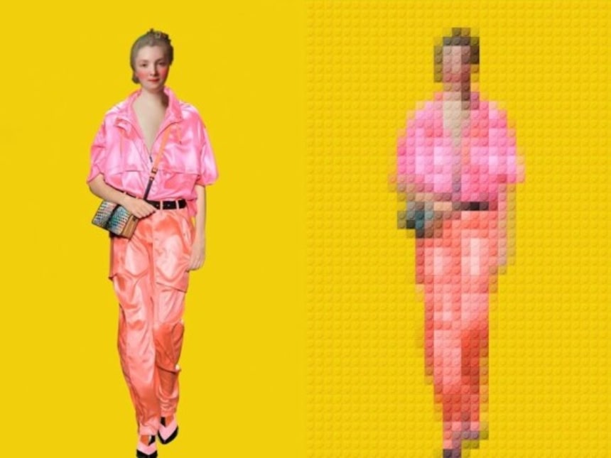 この画像を大きなサイズで見る時間の流れだけでいうと、アントニオさんの作品に使われている絵画は「古い」。そして、ファッションは「新しい」。しかし、レゴブロックで表現した色味には古いも新しいもなく、“タイムレスな色”があるだけだ。ぼんやりとしているけど、しっかりファッショナブルな雰囲気が伝わるのがおもしろいね。