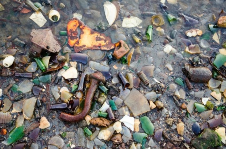 ガラスやテラコッタのゴミが集積しているのは美しいけど