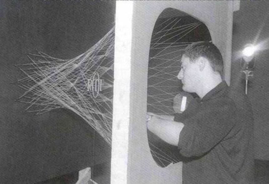 2次元の絵では不可能な明るいゆらめきを出すために、何本もの線を3次元で配列して撮影している。