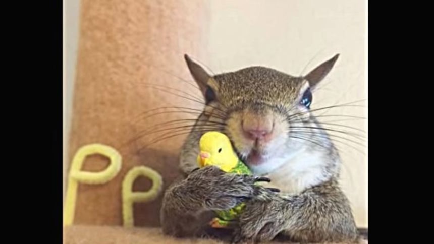 この小さなリスは赤ちゃんの頃、ハリケーンが街を襲ったときに木の上から落ちてしまい、2人の人間に保護されたんだ。