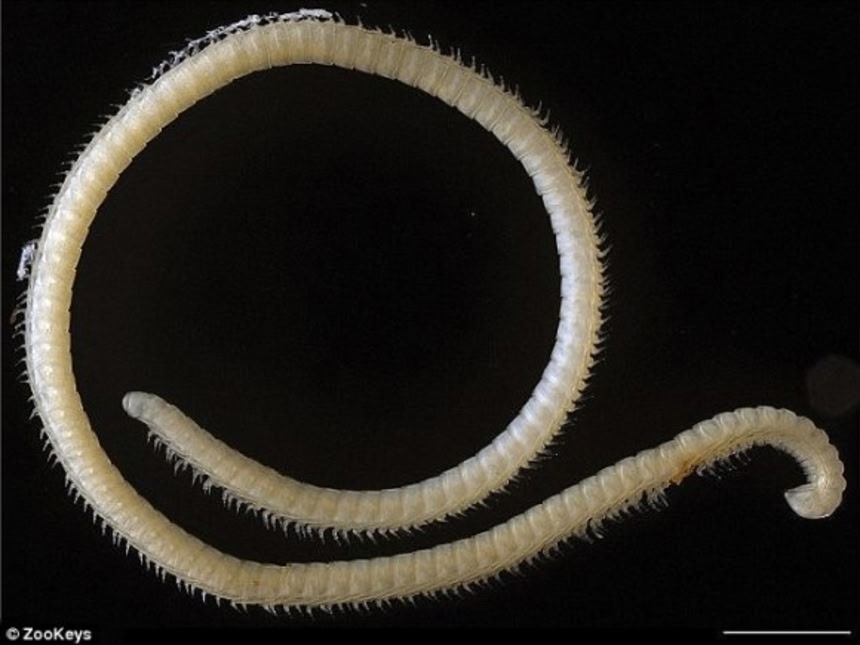 この画像を大きなサイズで見るカリフォルニア州セコイア国立公園の洞窟内で発見。足が414本、息子スティック4本、奇妙な口を持つ。