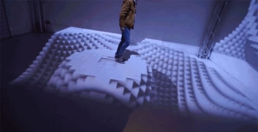 フランスのクリエイティブ・スタジオ「THEORIZ」が、最新のテクノロジーを駆使した“複合現実”を楽しめる仕掛けを開発した。部屋の中を歩く人の動きをトレースして、そのデータをリアルタイムで処理。天井にあるプロジェクターが、動きに合わせた映像を床や壁に映し出すというものだ。