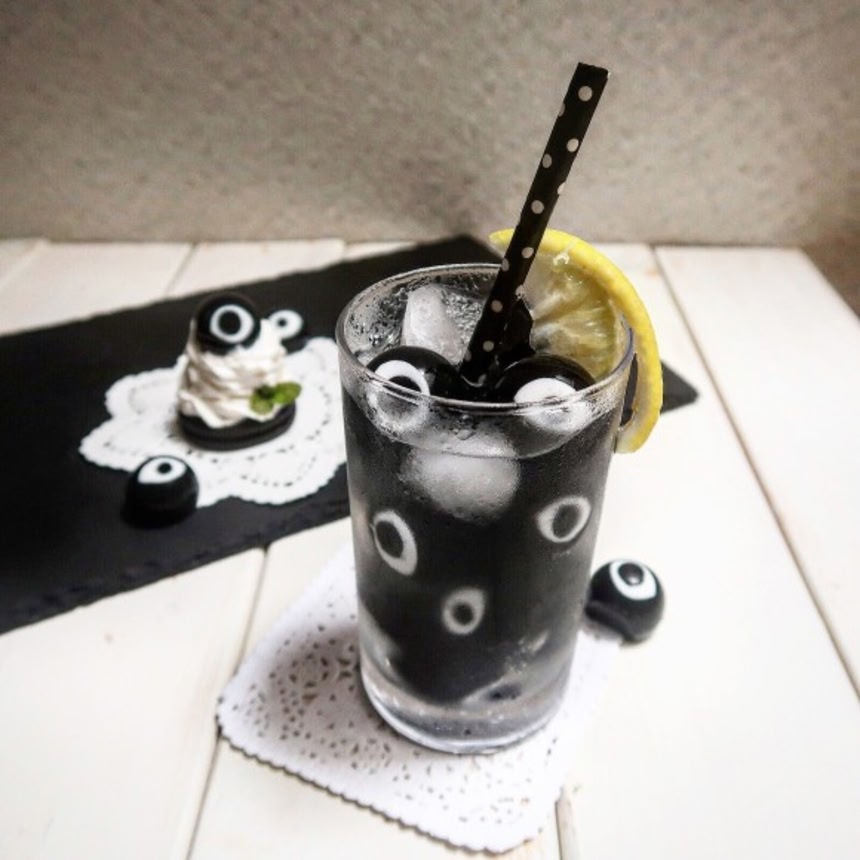 ということで今回は、竹炭パウダー100%の黒の食用色素を使って、見つめられている感のあるチーズクリームとレモネードの作り方を紹介しよう。炭と聞くと墨汁のニオイを思い出してしまうかもしれないが、全くの無味無臭なんだよこれが。なのでいかようにもアレンジできるわけだ。