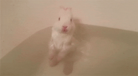バニーさんのふわふわとした白くて長い毛がお湯に浮かんで、全身がとろっとろに溶けてしまっているみたいに見える。顔だけ出しているもんだから、白い雲に埋もれてる的な、お空の上からコンニチハ的な感じもあってなんだかメルヘンチックである。