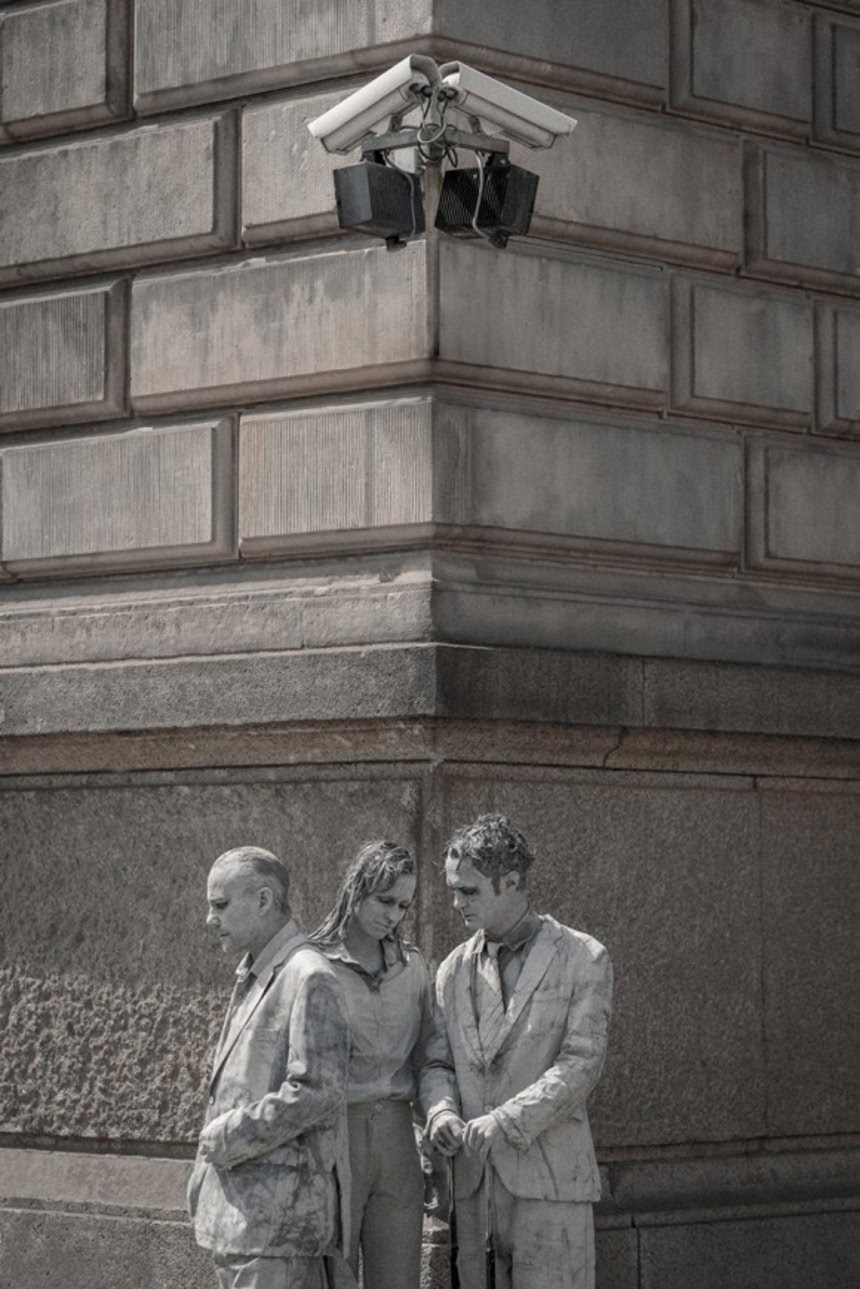 壁や道路の保護色となるグレー、その色に染まる存在は、