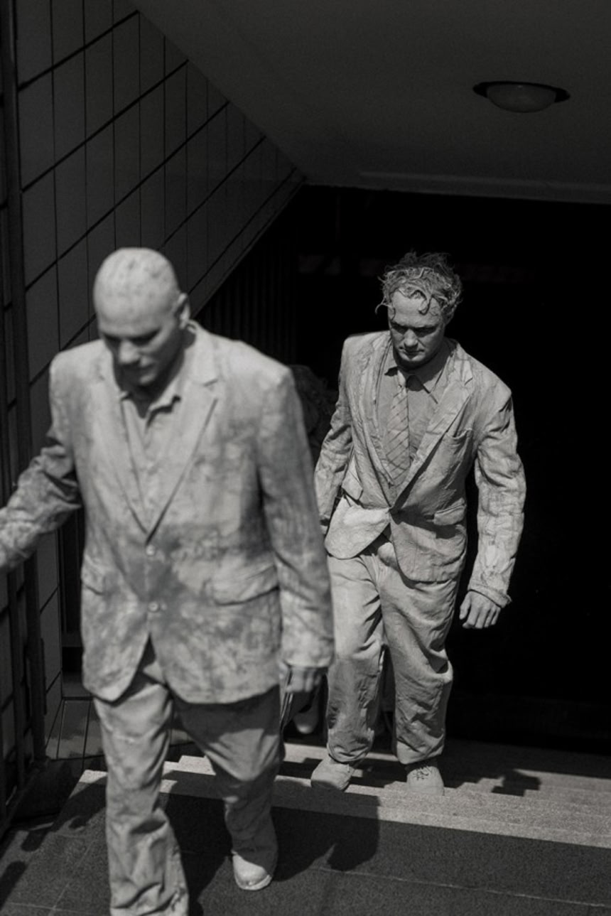 当日、亡霊集団は約2時間も街中を歩いた。だが、ただ歩いただけではなく、「変容と成長」を軸にしたストーリーが設定されていた。まず、人々は髪や顔、服、体などに粘土を塗りたくって全身灰色状態で登場。この姿は連帯感を失った社会を表現しており、最終的には利己主義と拒絶の色に染まるイメージだ。