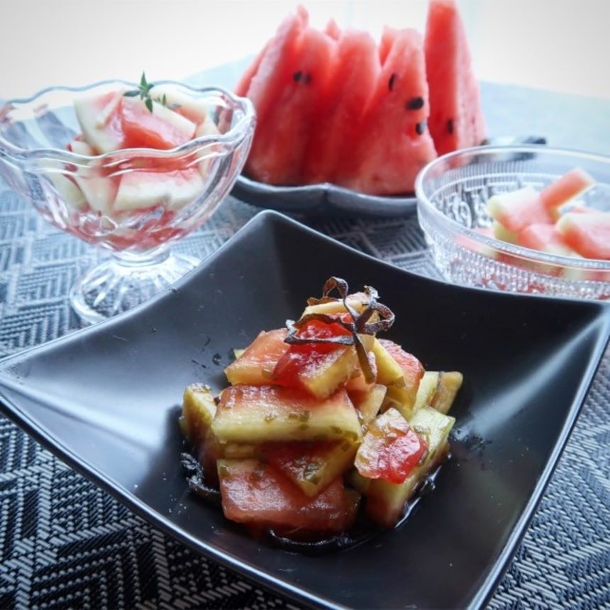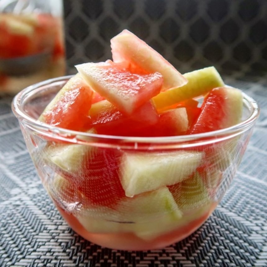 スイカの浅漬けは夏の漬物として昔からあったね、甘酢になるピクルスにしても合いそうだ