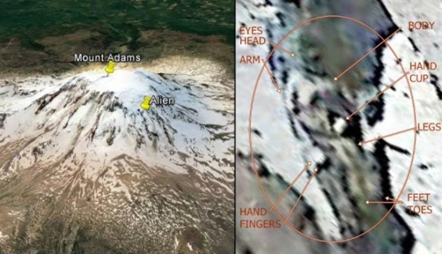 この画像を大きなサイズで見るECETIは数十年前からアダムズ山に存在する、異星人のポータルと噂されている「異星人ハンガー」の存在を確かめるため、グーグルアースを使った調査を行っていた。
