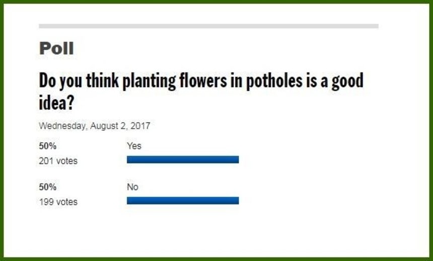 ウェランドの地元メディアは、「ゲリラ・ガーデニング」の活動と行政側の言い分を共に紹介したページで、「陥没穴に花を植えるのはいいアイディアだと思うか?」とのアンケートをとっている。8月2日時点では、”Yes” と “No” の比は、201票:199票と拮抗している。