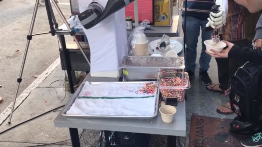 そのロボットは、道行く人々にスクープ一杯のアイスクリームとトッピングを無料で配っていたのである。
