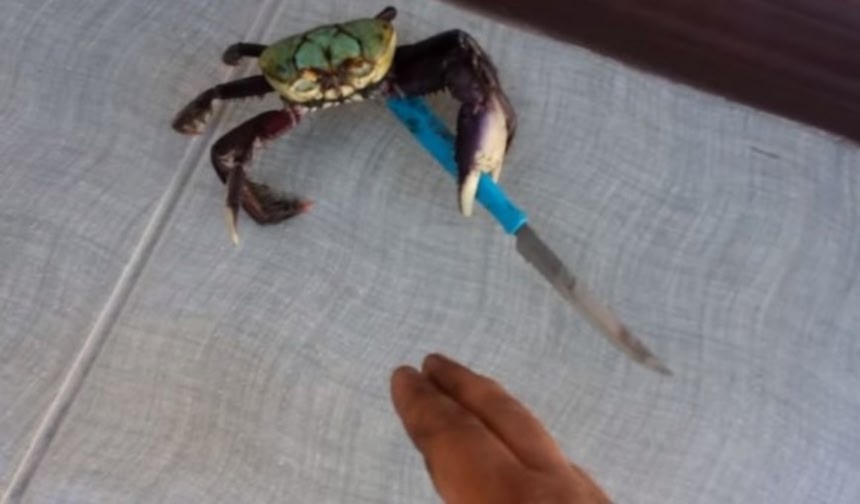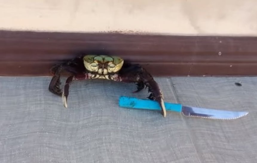 この画像を大きなサイズで見るこちらのカニもハサミでナイフをはさんでうろうろしてるよ。