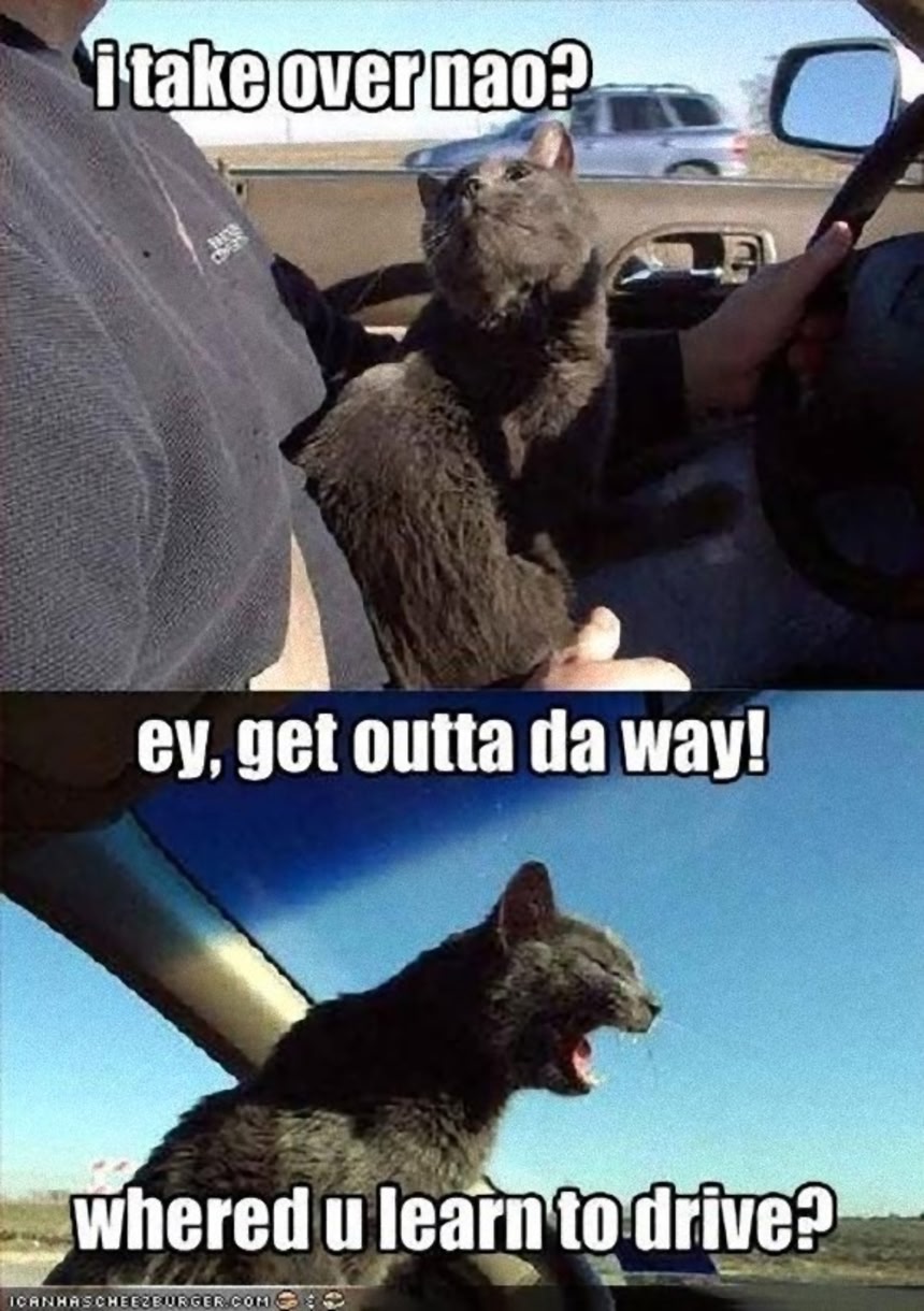 ここでは動物たちと乗り物に関する面白画像+キャプションを見ていこう。海外の笑いと日本の笑いの違いとかもわかるかも。