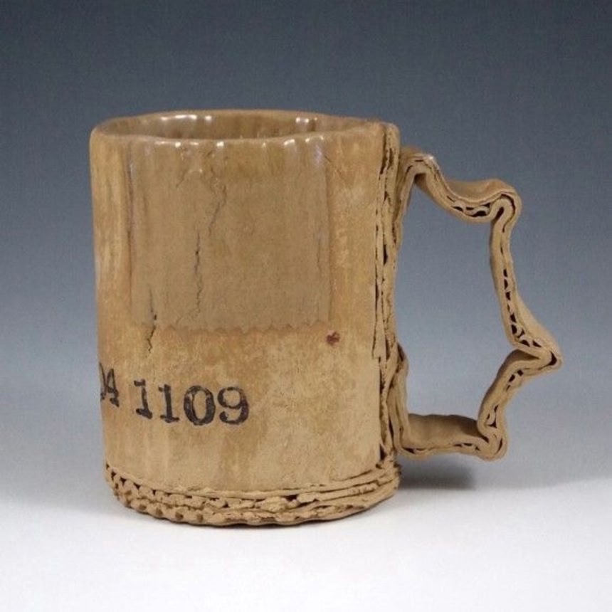 見た目は破れたダンボール、錆びたブリキの缶なんだけど実は陶器っていうそのギャップを楽しめるんだ。