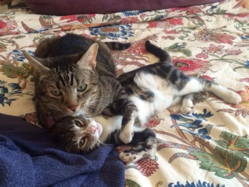 この画像を大きなサイズで見る先住猫のスキットルさんはすぐにカンガを受け入れ、