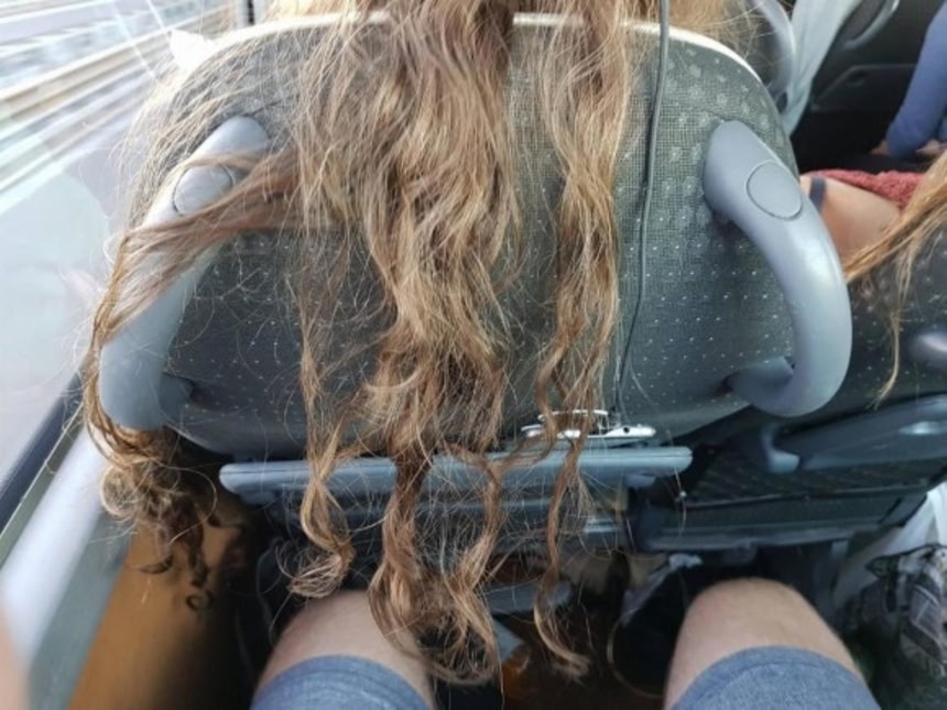 電車の端っこの席に座っているときに、髪の長い人が後ろ向きに寄りかかっているとこういう目に遭ってうざい
