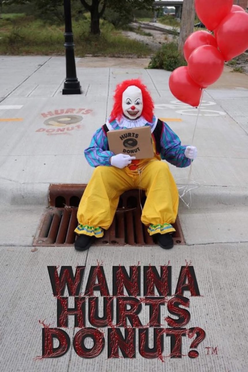 ドーナツショップの車を運転するピエロを街中で見かけたら、それだけでもけっこう怖いんじゃなかろうか。それが後続車だったりなんかしたらもう・・・悪夢だな。