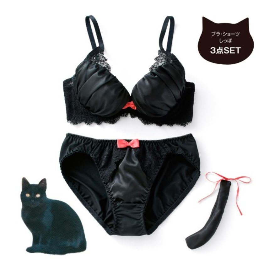 この画像を大きなサイズで見る更にシークレットに猫化を進めたい女子向けに、「なりきりにゃんこ」シリーズとして、なブラセットやインナーウエアなども展開されている。