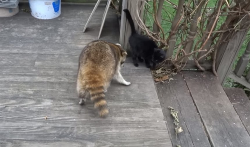 2匹の子猫がどうやってアライグマと知り合った(?)かは