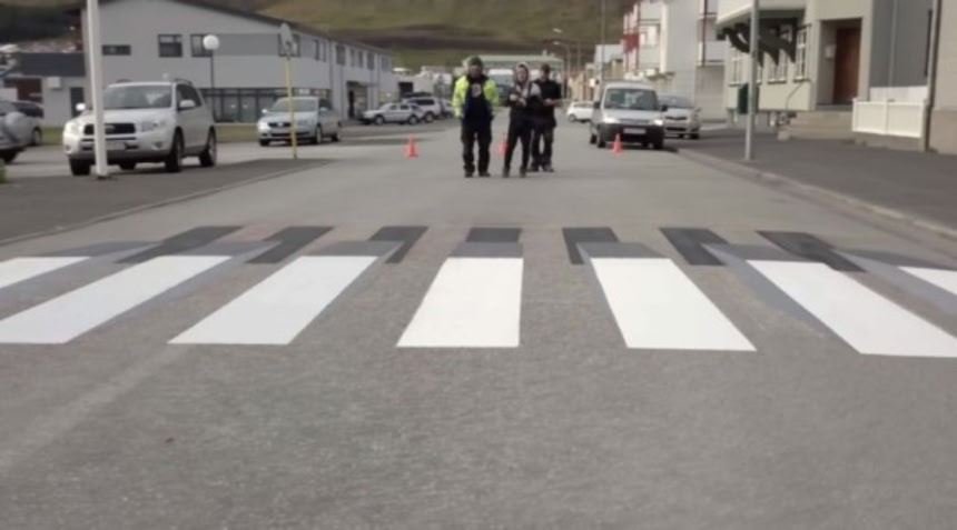 目の前に見えてきた横断歩道が立体的で浮かんでいるように見えたらどうする?ドライバーならびっくりしてスピードを落とすはずだ。そう、それが目的なのだ。ドライバーに注意を促す目的で作られたのが「錯視横断歩道」なのだ。