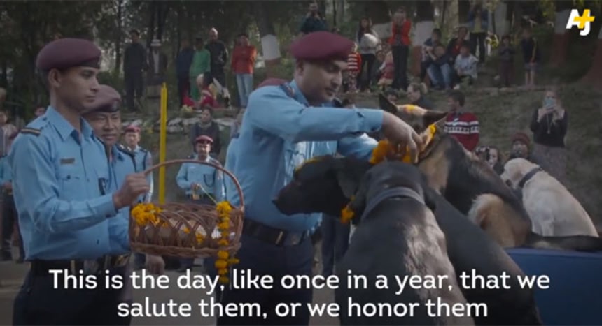 この画像を大きなサイズで見る下の動画は昨年の犬の日のネパール警察の様子。一斉に並んだ警察犬が花飾りや印をつけられて特訓の成果を披露してるぞ。