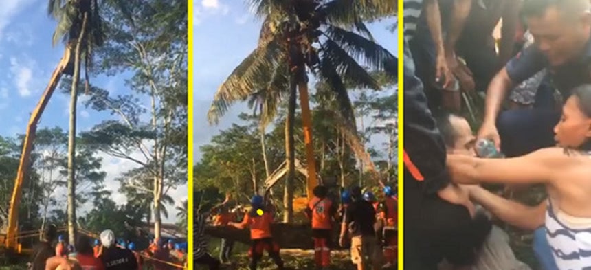 10月11日、50人のボランティアチームがギルバートの家族と共に説得にあたり、ついにはチェンソーでココナッツの木を切り始めた。