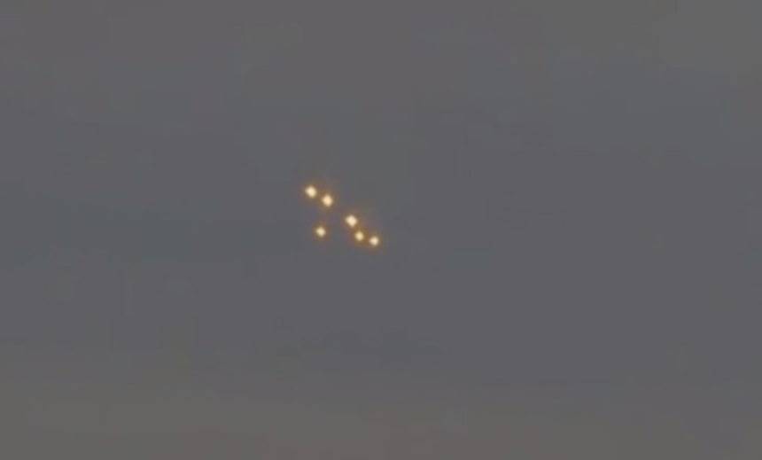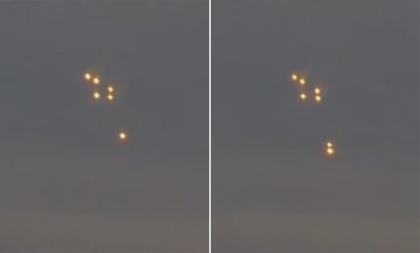 この画像を大きなサイズで見る当初、上空で輝く光は6つで編隊を組んでいるようだった