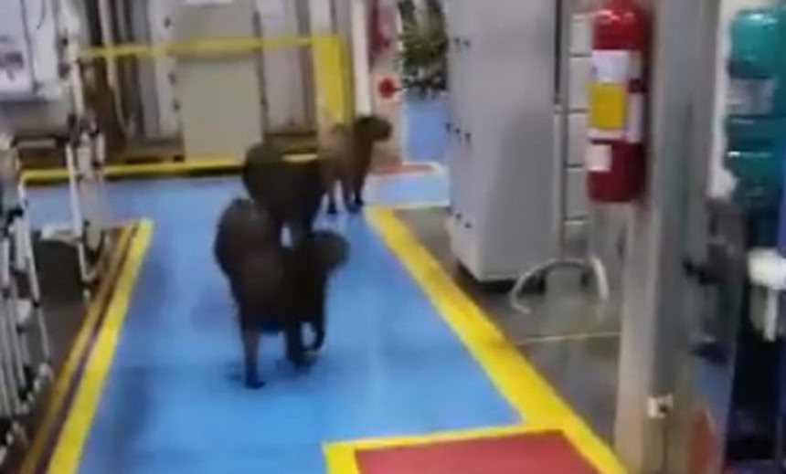 Capivaras invadem empresa