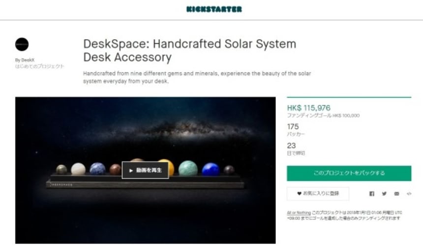 現在のところ最安値は惑星オブジェ、木製スタンド、小冊子、ギフトボックスなどがセットで約7000円、発送予定は2018年3月となっている。