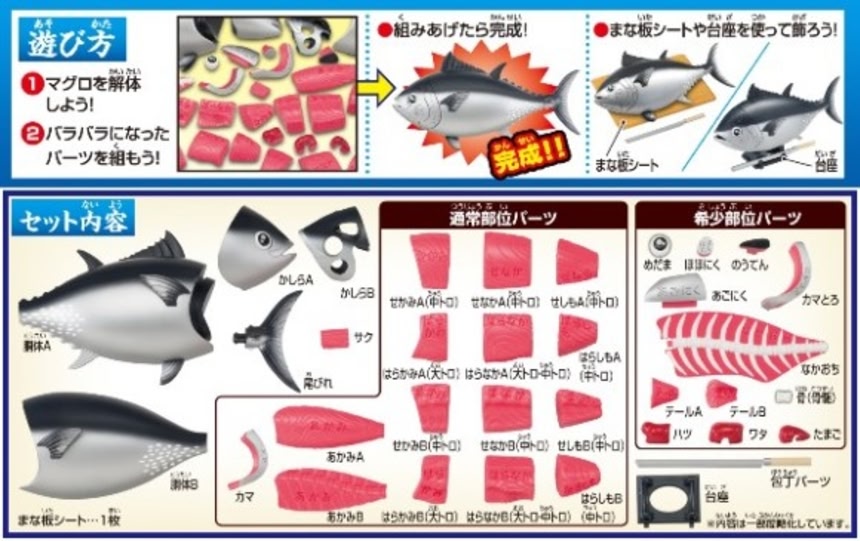 パズルとして遊ぶだけでなく、本マグロとしてディスプレイするのもいいし、マグロの解体ショーにチャレンジしてみるのもいいだろう。希望小売価格は1580円(税抜)となっている。