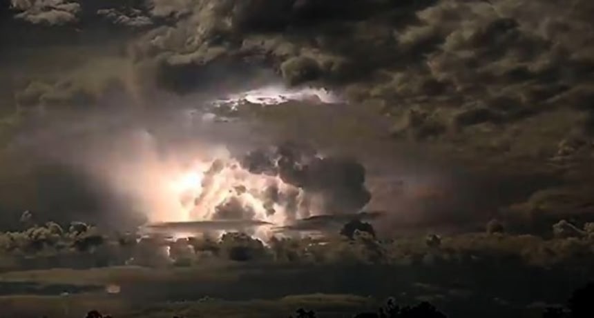 その時、丘の上に発生した嵐雲の動きがフォトグラファーのジェフ・グリーンによってとらえられた。タイムラプス(早回し)により、その禍々しさに畏怖の念、神々しさに畏敬の念を抱く。
