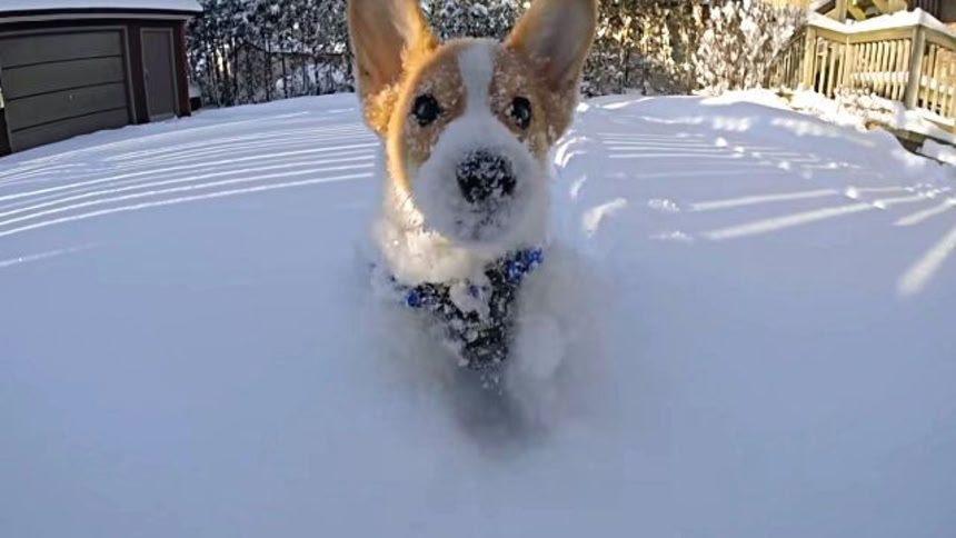 40cmの雪が積もった日。生後4か月のコーギー、マキシは生まれて初めての雪を体験することになったんだ。