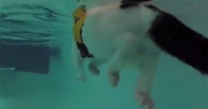 犬かきという言葉があるとおり水遊びが好きな犬は多いし、それが治療につながるのであれば一石二鳥。獣医も水泳をおすすめしているわけだが、それはあくまでも犬の話である。