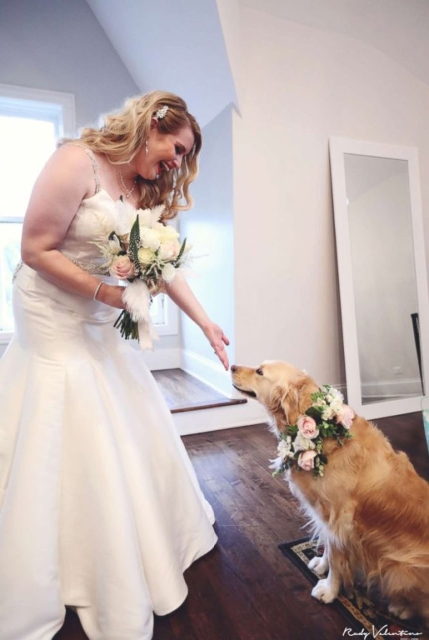 この画像を大きなサイズで見るアメリカ・イリノイ州シカゴで11月4日、ブリアナ・シェーファーさん(30歳)の結婚式が行われた。この日彼女が一番に祝ってほしかったのは、ほかならぬ愛犬のゴールデンレトリバーのノラである。