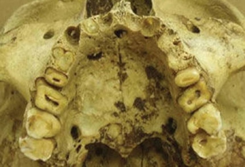 画像の上顎部の歯に虫歯がたくさんある事から、この人物は虫歯に苦しみながら合併症で亡くなったのかも