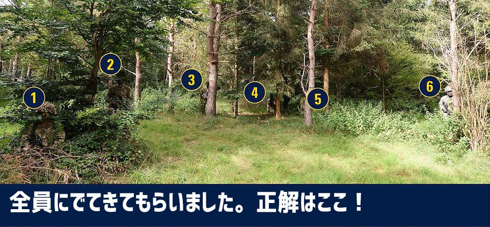 この画像を大きなサイズで見るこれでも全然わからないよね。というか兵士にとってカモフラージュは、生き残ることのできる必要不可欠なスキルなわけで、わからなくても当然なのだ。