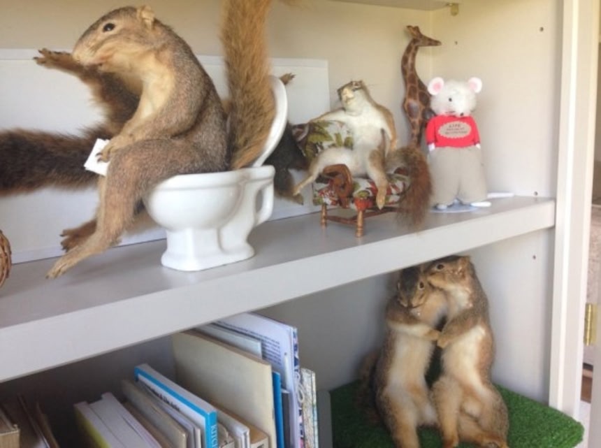 米国ではリスが増えすぎ、害獣として駆除の対象になっていると聞きます。剥製になっていなければ、一般の目に触れることもなく焼却処分され葬られるだけの話です。剥製になったリスを見て「残酷だ、可哀想だ」と思う気持ちは分かりますが、その何百倍もの数のリスが殺され灰となっている。それは見えないだけで、捕獲・殺処分された事実は厳然と存在します。剥製にされ「見える化」された屍は、それを見る者に、何故彼らが駆除されなければならないのかを思い起こさせるきっかけになるのではないでしょうか。