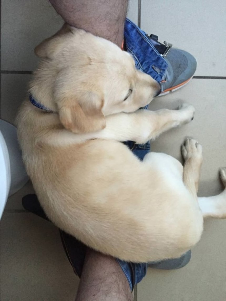 Imgurユーザーのrayzer12さんは生後2か月に満たないラブラドールレトリバーのアクセルを家族に迎えた。するとアクセルはどこまでもついてきて、トイレに行くとパンツ(正確にはブリーフ)の中に入り込むドットコムになる始末。