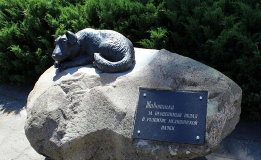この画像を大きなサイズで見る旧ソ連系の国々の大学や研究機関は、動物に捧げた像をつくっている。ベラルーシのグロドノ医科大学の入り口には、悲しそうな顔をした犬の像がある。