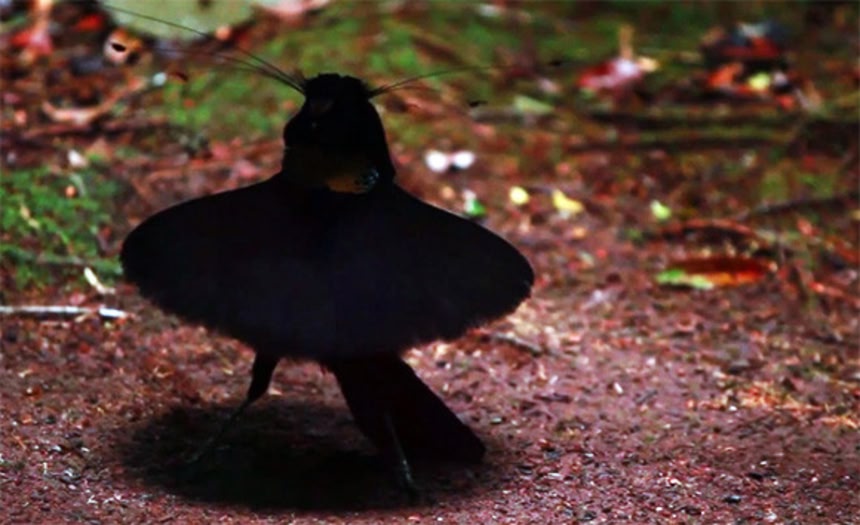 その一方、極楽鳥はおそらくその黒を他の仲間と同じ目的のために使っている。求愛である。