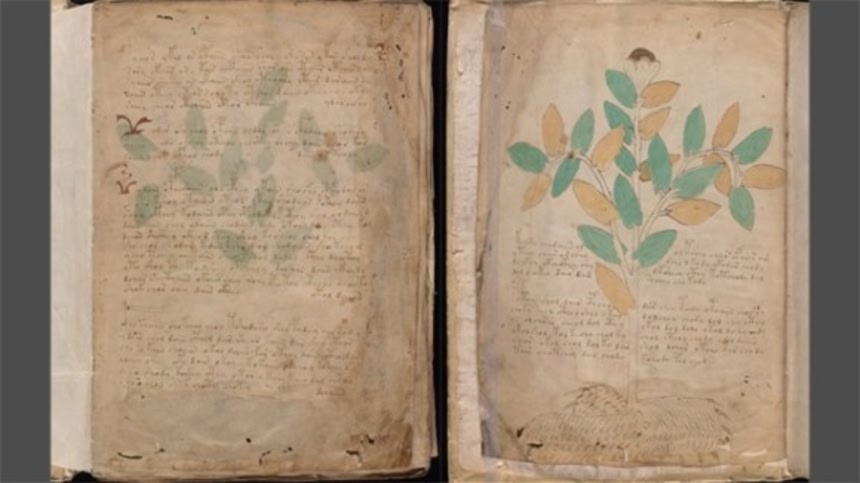 ヴォイニッチ手稿は炭素年代測定によって1400年代初頭に制作されたとされる。女性の健康について記したものと考えられているが、未知の言語に加え、謎の暗号らしきものまで散りばめられているため、確かなことは不明だ。