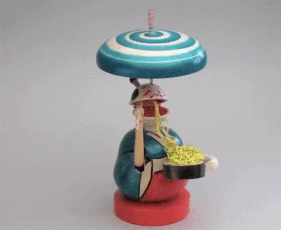 トラの脇腹からはクランクが飛び出していて、それを回すと内蔵されている機械が作動して男の腕が上下する。