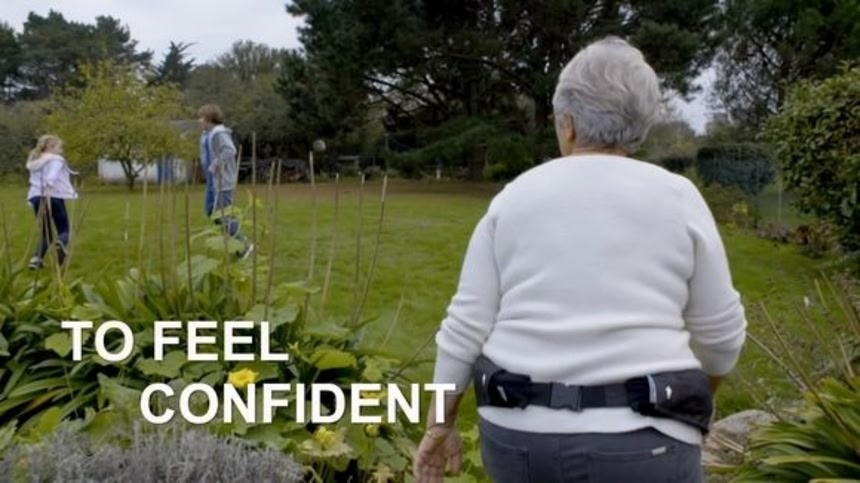使い方は極めて簡単で、朝起きたら腰に巻くだけだ。装着した人が転倒すると、センサーがそれを感知し、エアバッグを膨らませる。